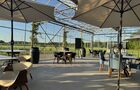 Buiten op het vlonder staan 4 banken waar je met 20 man onder parasols kan zitten. Mijn verhuurseizoen is van april tot october.