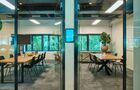 Op de eerste en tweede verdieping zijn extra ruimtes beschikbaar voor kleinere presentaties tot ongeveer 30 personen, groepstafels of individuele werkplekken met monitoren. Elke ruimte kan worden aangepast aan de behoeften van uw evenement, van workshops tot trainingen en formele lezingen.