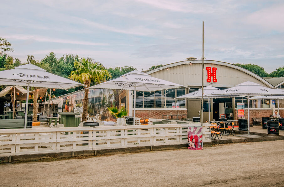 De Houthallen is een duurzame, industriële en ongedwongen evenementenlocatie met een uniek stadsstrand op een oud fabrieksterrein nabij Breda. Deze verborgen parel combineert een stoere uitstraling met een hip en duurzaam interieur, volledig ingericht met gerecyclede en vintage materialen.