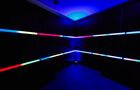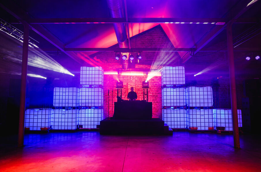 Het product is eenvoudig. Het is een standaard IBC-tank met een geïntegreerde palletbasis waardoor het stapelbaar is. Het heeft een mooie industriële uitstraling en is zeer stevig. Daarom is het heel eenvoudig om structuren te creëren. Bijna net zo eenvoudig als bouwen met LEGO! Het heeft ook een LED binnenin en een DMX-controller waarmee je alles kunt synchroniseren en op de muziek kunt laten reageren.