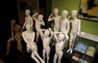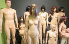 Het aanbod van etalagepoppen onmvat abstract witte en zwarte modellen, maar natuurlijk ook realistische huidskleur etalagepoppen met verschillenfde houdingen.