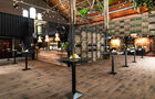 De inrichting faciliteert een plenaire bijeenkomst van 100 tot 250 mensen uitstekend, maar heeft ook veel te bieden als je je gasten buiten het formele gedeelte om op een natuurlijke manier met elkaar in gesprek wil brengen. Naast een af te schermen gedeelte voor plenaire sessies is er een gedeelte voor horeca met comfortabele zitjes en statafels. Het thema van de locatie is mooi uitgewerkt door hergebruikte zeecontainers te plaatsen waarin de lokale leveranciers van de food and beverages worden uitgelicht. Even rustig zitten om te eten en te praten kan op een soort vide van zo’n 60 m2 die uitzicht biedt op de hele ruimte.