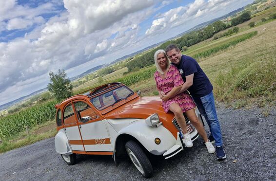 We hebben op 19 september een team building gedaan en 2 Pk-tjes gehuurd. Het weer was fantastisch, stralende zon ☀– ideaal om met open dak te rijden! Op het laatste moment hebben we de reservering nog gewijzigd naar 1 2-Pk’tje en een Méhari, wat helemaal geen probleem was. Sam was hierin zeer flexibel! Bedankt daarvoor 😃