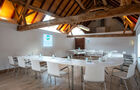 - De schuur; voor wie van authenticiteit houdt. Het is een grote, onafgewerkte ruimte met witgekalkte muren. De ruimte komt direct uit op de gerenoveerde binnenplaats van de oude boerderij.
