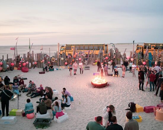 Denk aan een tocht met trucks over het strand naar een off-grid-locatie met kampvuur en live muziek. Of een zeilregatta gecombineerd met een spelelement en een terugrit op e-choppers.