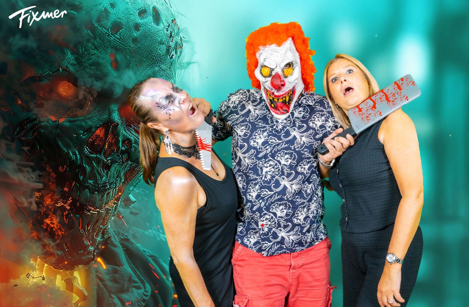 Voor een bedrijfsevent op vrijdag de 13e lieten we de gasten griezelen én lachen met een scary green screen foto-animatie. Alle achtergronden waren volledig in stijl van deze ongeluksdag.