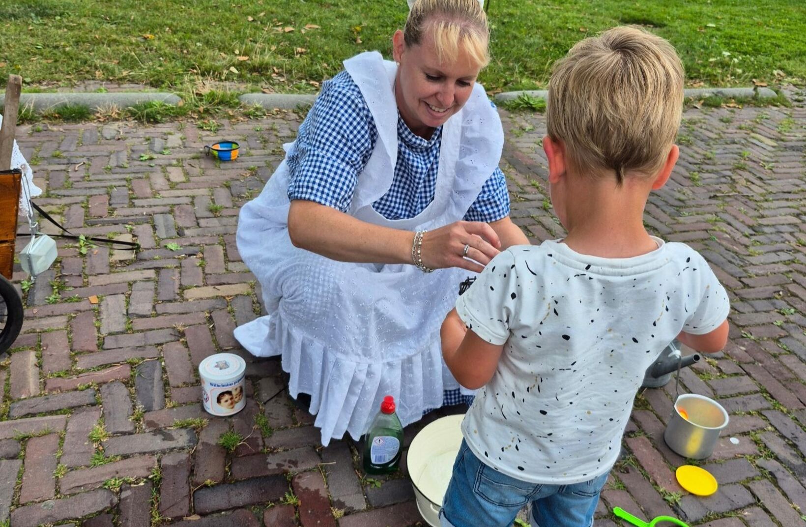 Naast een waslijn nemen zij diverse accessoires van vroeger mee voor op een kraam om te tonen. Zoals een verzameling zepen, oude strijkplanken en een kinderweegschaal, maar ook een verzameling boterkarnen en melkbussen.