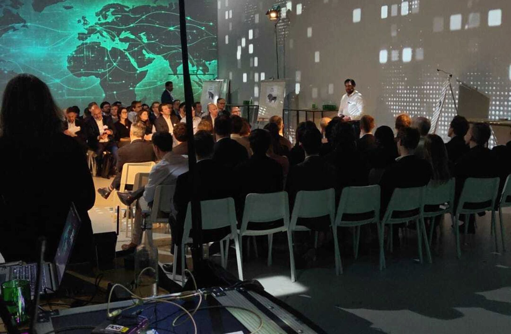 Met throw mics en flipcharts werd het publiek actief betrokken, waardoor ideeën, energie en beleving centraal stonden. Geen klassieke opstelling, maar een dynamische ervaring waar iedereen deel van uitmaakte.