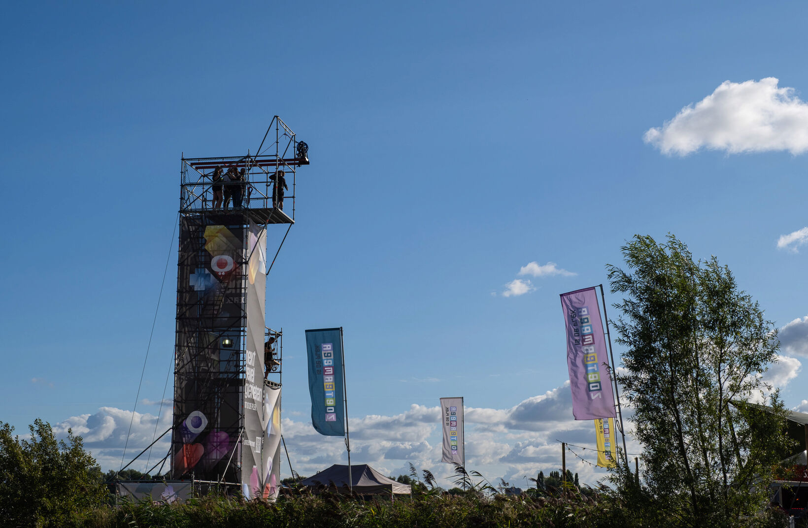 De imposante constructie torende boven het festivalterrein uit en werd meteen een opvallende blikvanger voor bezoekers. Met zicht op het meer namen deelnemers plaats op de schommelinstallatie, waarna ze hoog boven het publiek heen en weer zweefden.